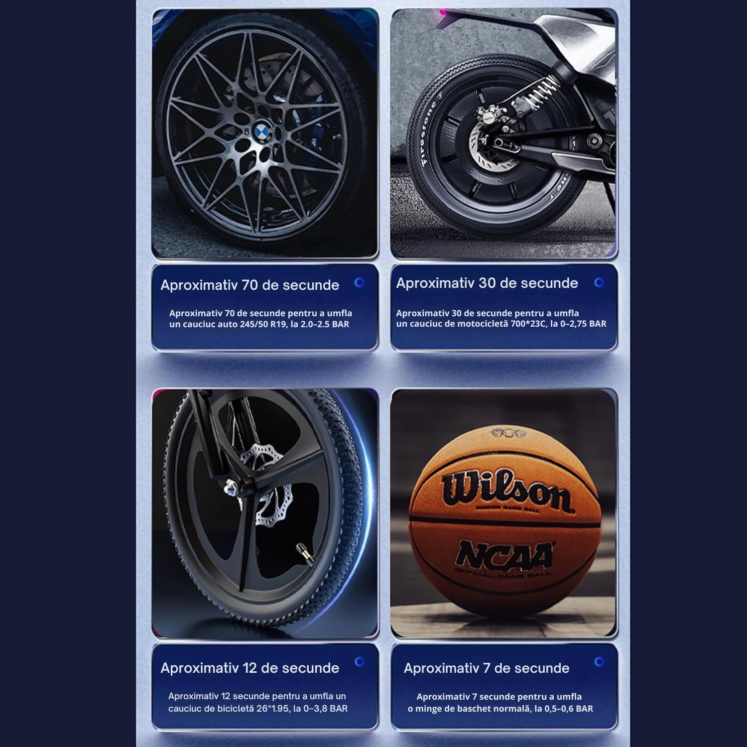 Pompa de aer portabila pentru anvelope – Compresor inteligent wireless